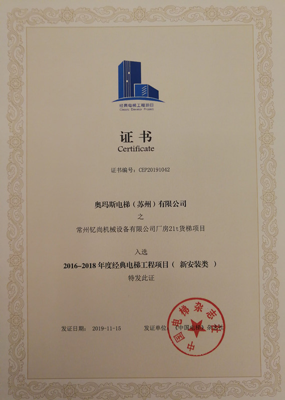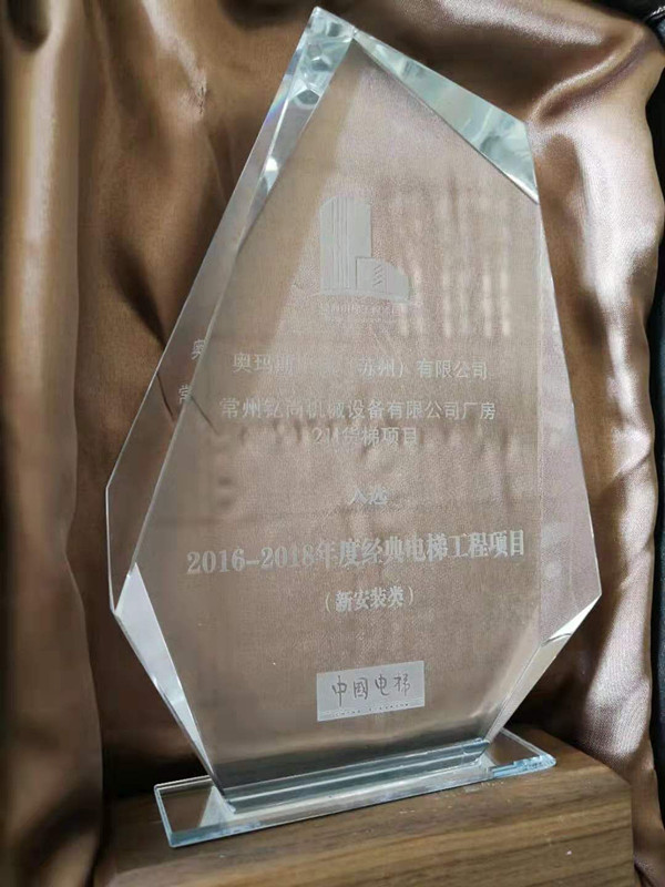 令人歡欣鼓舞的是:我公司憑“常州釔尚機(jī)械設(shè)備有限公司廠房21T 超噸位載貨電梯”項(xiàng)目在眾多候選工程中脫穎而出,榮獲”新安裝類經(jīng)典電梯工程項(xiàng)目”獎(jiǎng)杯與證書。我司李金偉副總代表公司出席并上臺(tái)領(lǐng)獎(jiǎng)。(見下列圖片)