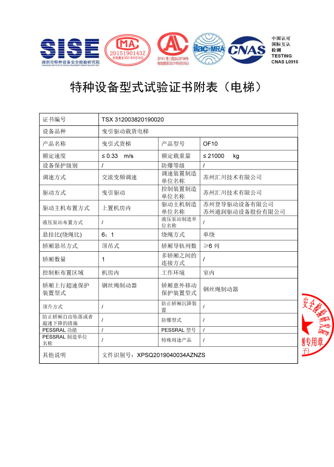 21噸貨梯型式試驗(yàn)報(bào)告: